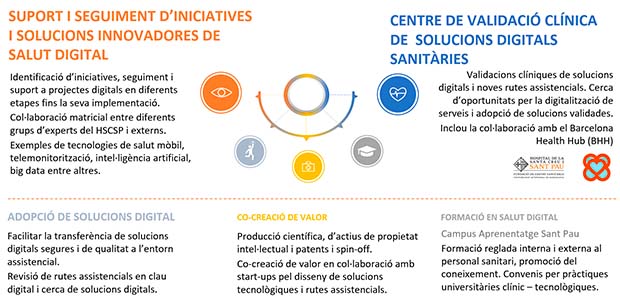 Esdevenir la unitat de referència per a l’impuls de la salut digital a l’entorn hospitalari i la validació clínica de solucions digitals sanitàries en els següents àmbits: