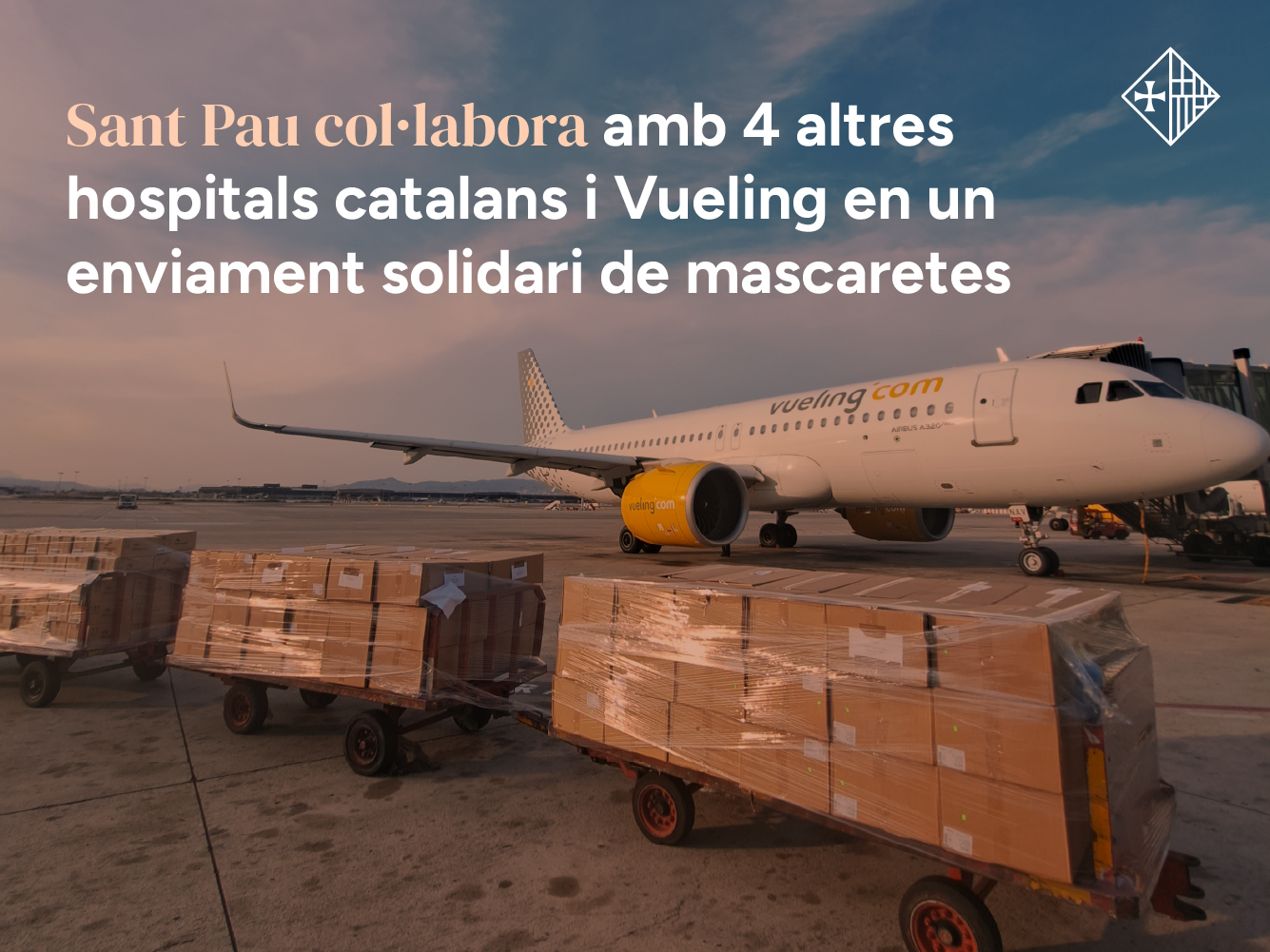 L’Hospital de la Santa Creu i Sant Pau, l’Hospital Clínic, el Consorci Sanitari de Terrassa, el Consorci Hospitalari de Vic, i l’Hospital del Mar - Parc de Salut Mar, en un esforç coordinat i amb col·laboració de la companyia aèria Vueling Airlines han fet una donació de més de 150.000 mascaretes, pantalles facials i ulleres estanques al Cabildo de Tenerife i a la conselleria de Sanitat del Govern de Canàries.