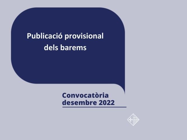 Avui, 13 de juny, us informem de la publicació del càlcul provisional del barem associat a les convocatòries publicades el 30 de desembre de 2022 que no tenen associada una prova tècnica. Els barems de la resta de convocatòries, que tenen proves associades, es publicaran en dies vinents.