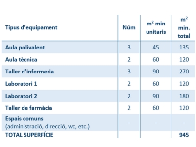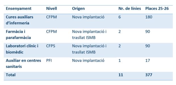 En conjunt, l’institut acollirà prop de 380 estudiants d’FP cada any amb la voluntat de donar resposta tant a l’alta demanda de preinscripció en la Formació Professional sanitària, com a les noves necessitats de formació del sector i a l’alta demanda de professionals qualificats/des de la salut i l’atenció a les persones que es preveu per a les properes dècades. L’oferta formativa del curs vinent inclou formació especialitzada en Cures Auxiliars d’Infermeria, Farmàcia i Parafarmàcia, Laboratori Clínic i Biomèdic, i Auxiliar en Centres Sanitaris.