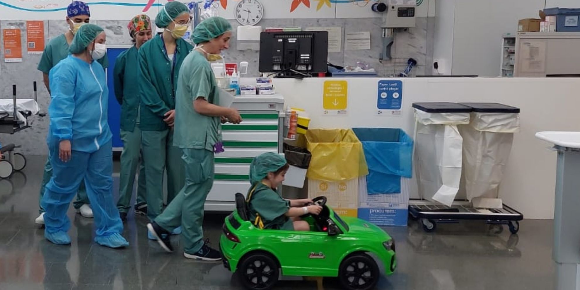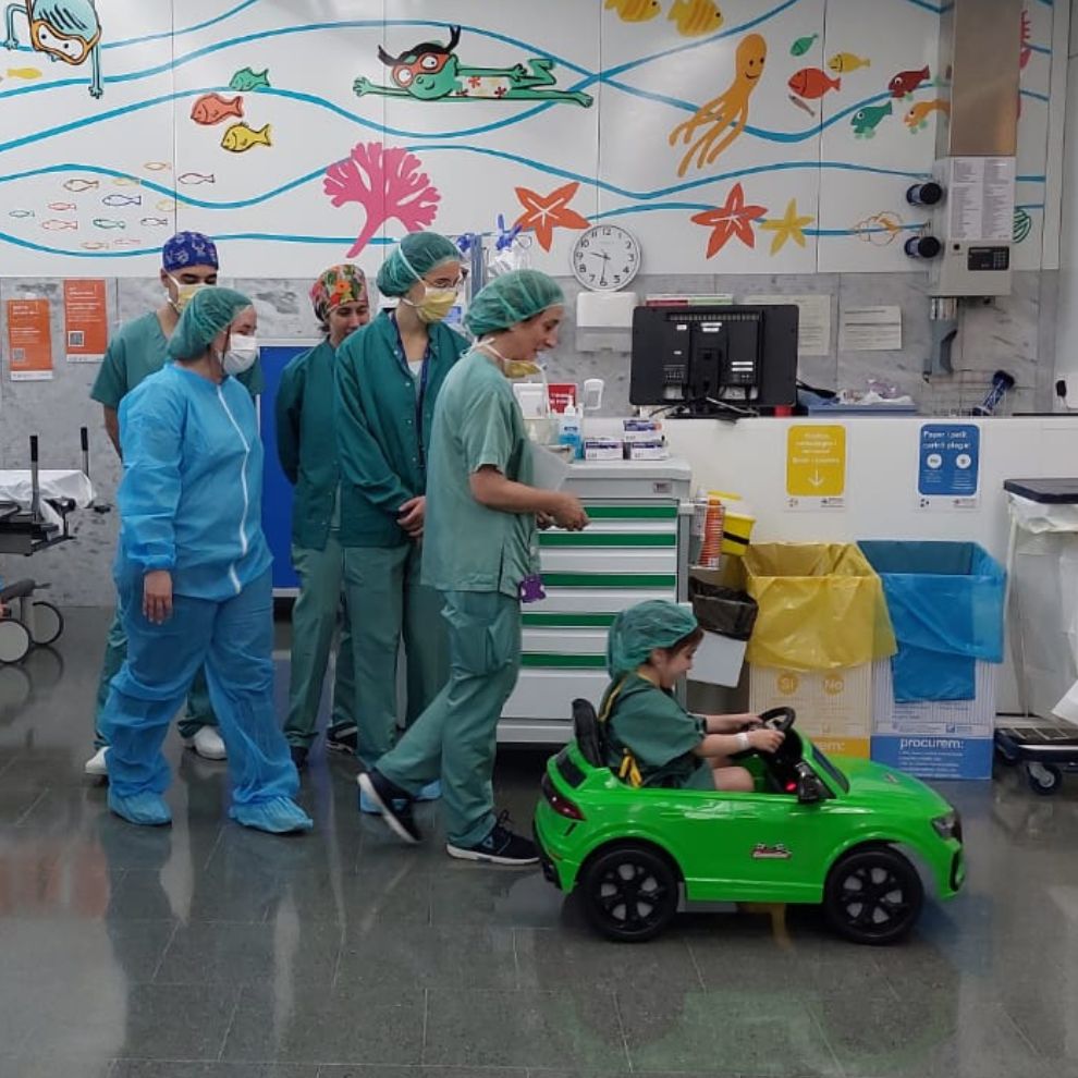 Sant Pau incorpora l’acompanyament familiar als quiròfans pediàtrics i introdueix cotxes elèctrics per als pacients més menuts