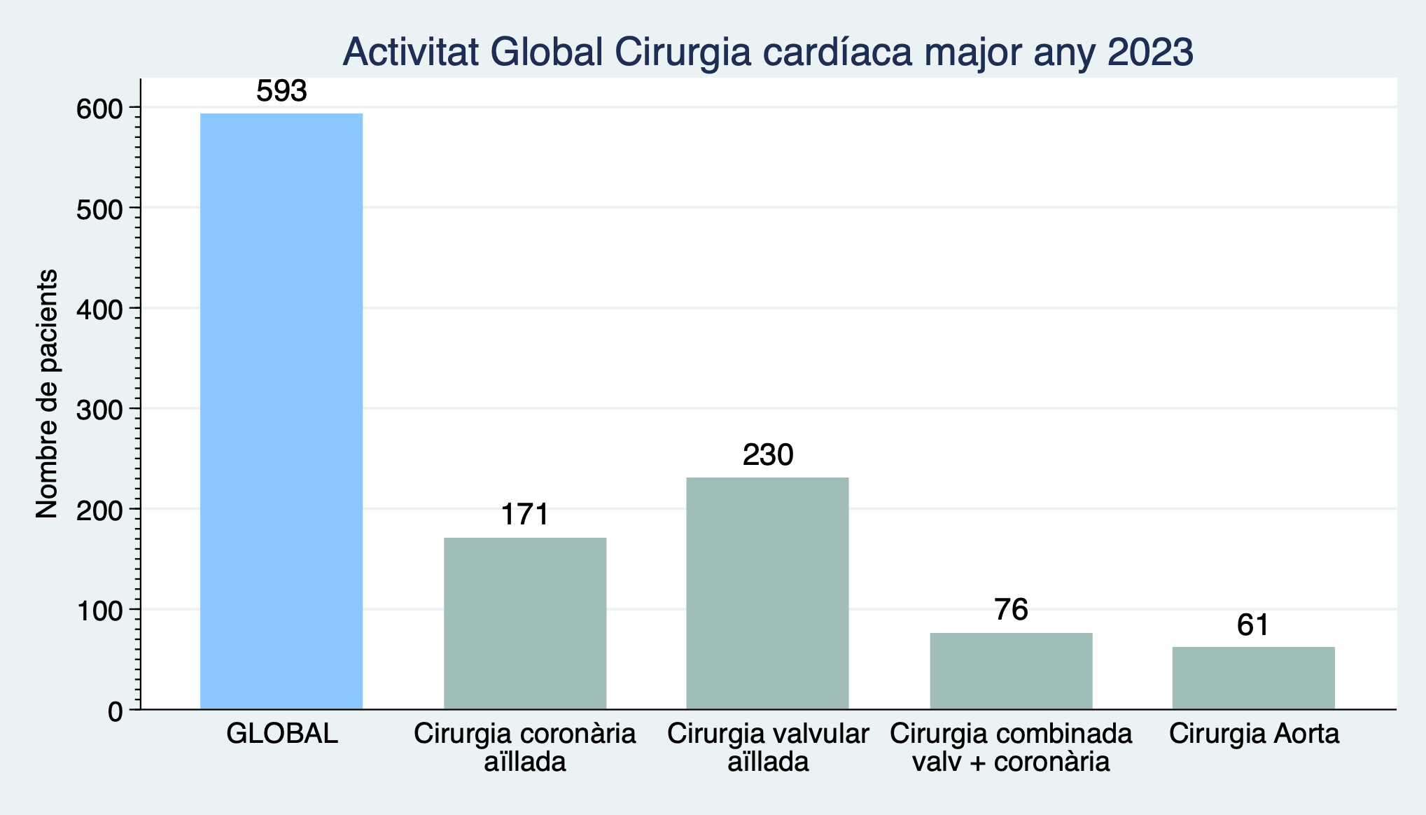 A l’Hospital de la Santa Creu i Sant Pau es realitzen al voltant de 600 cirurgies cardíaques majors i 100 menors. Aquesta activitat inclou cirurgies electives programades i urgents amb ingrés, així com a cirurgia major ambulatòria.
