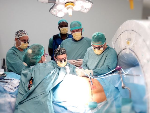 Per primer cop, l’Hospital de Sant Pau ha fet tres cirurgies de columna vertebral en una única intervenció gràcies a una tècnica molt innovadora i molt menys invasiva que els abordatges habituals. Durant tota la intervenció el pacient roman en posició decúbit lateral i els cirurgians accedeixen a la columna des de la part anterior, lateral o posterior, mantenint intacta la musculatura lumbar i evitant tocar qualsevol nervi important. A més de ser mínimament invasiva, aquesta cirurgia és més curta i redueix el risc de sagnat, el dolor i l’estada hospitalària, amb una recuperació més ràpida i uns millors resultats postoperatoris respecte als procediments quirúrgics habituals. La intervenció l’ha feta l’equip multidisciplinari de la Unitat de Cirurgia de Raquis, liderat pel Servei de Neurocirurgia. -