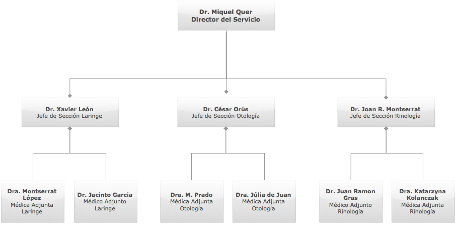 El Servicio de Otorrinolaringología tiene una estructura dividida en tres áreas de conocimiento (secciones de otología, de rinología y de laringología-cabeza-cuello) para facilitar el conocimiento y la capacidad de solución ante las patologías de su ámbito.