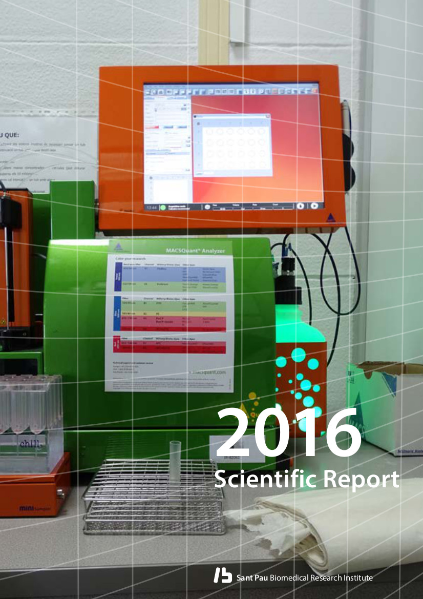 Podeu consultar la Memòria científica de l'IIB Sant Pau corresponent a l'any 2016 en la que es troba recollida l’activitat de l’Institut i les fites més importants aconseguides l’any passat.