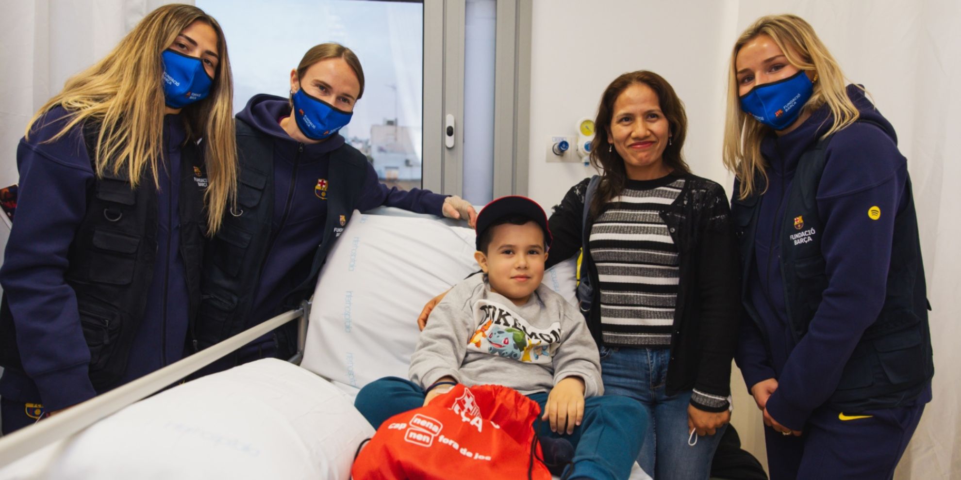 La tarda d’ahir, els nens i nenes hospitalitzats i atesos a Urgències del Servei de Pediatria de Sant Pau, van conèixer les jugadores del primer equip de futbol femení del FC Barcelona, Caroline Graham, Martin Fenger i Laia Alexandri, una visita emmarcada dins el projecte Polseres Blaugranes de la Fundació Barça, i que posa el punt final al programa d’activitats de Nadal de l’Hospital.